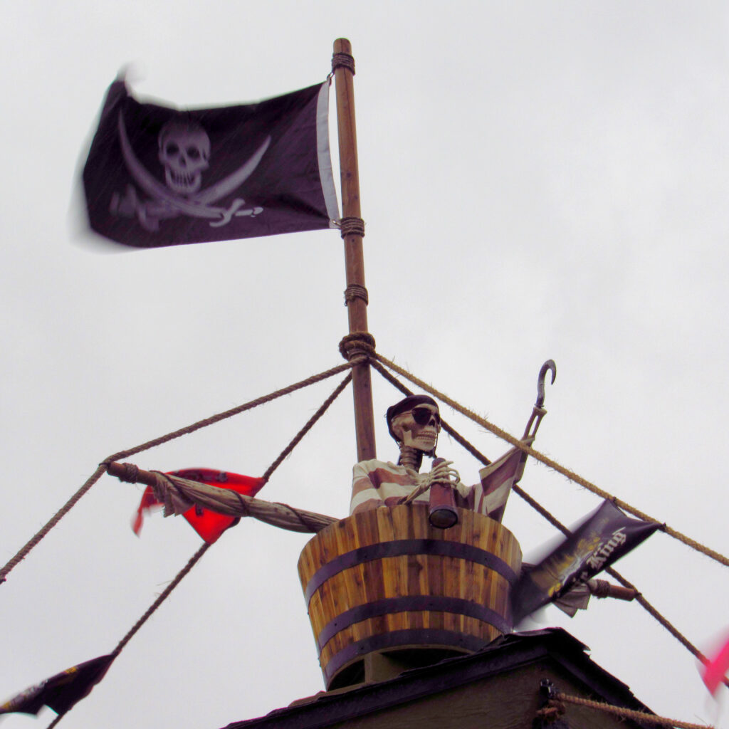 “It started with the main rigging and the cannon, which is made from a church pew and a scuba cylinder,” Tracy says. “I just kept adding little things. The net, the pirates, the pylons, the crow’s nest up on top.”