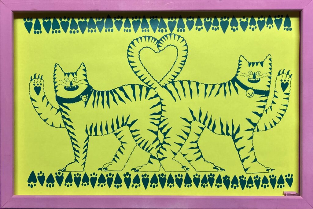 This exhibit has both new work and old. “The work in the show Like Cats and Dogs is my attempt to celebrate new work and old and the inherent value in both.”