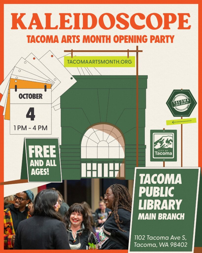 • Tuesday, October 7, 6 – 9 p.m. Tacoma’s annual literary crawl returns! Wander through downtown venues and experience an evening of live readings, storytelling, and performances from local writers, poets, and creatives. Each stop offers a fresh lineup and new atmosphere, mixing literature with Tacoma’s nightlife for a one-of-a-kind community celebration of story. Venues include Kings Books, Doyles, Manuscript, The Grand, The Mix, Puget Sound Pizza, and The Rusty Goat. See full event details at CreativeColloquy.com
