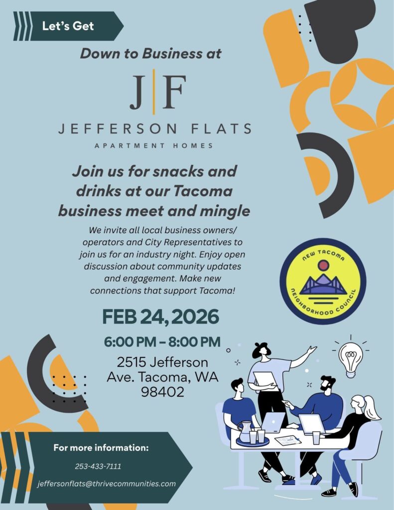 - The business community of South Tacoma Way (STW) is launching First Fridays with a monthly, full-day, community-wide event on the first Friday of every month around the 54th Street and South Tacoma Way intersection. It invites the public to explore STW and discover new favorites in food, shopping, and more. Many local businesses are offering promotions to draw in the community and support the district’s growth.