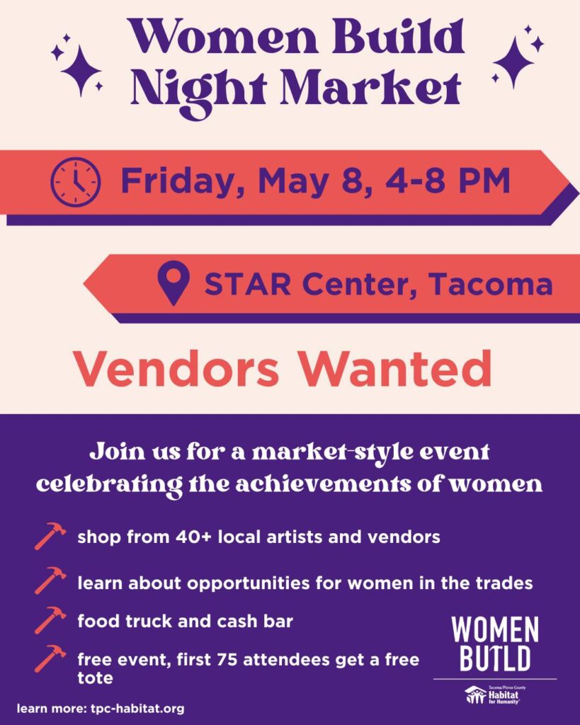 - The Historic Homes Tour returns May 2–3, offering a rare chance to step inside eight historic structures in North Tacoma. Visitors can explore architectural details and learn how Tacomans lived in years past. Get tickets and more information at Tacomahistory.org/hometour. (See story on page 18 of this newspaper.)