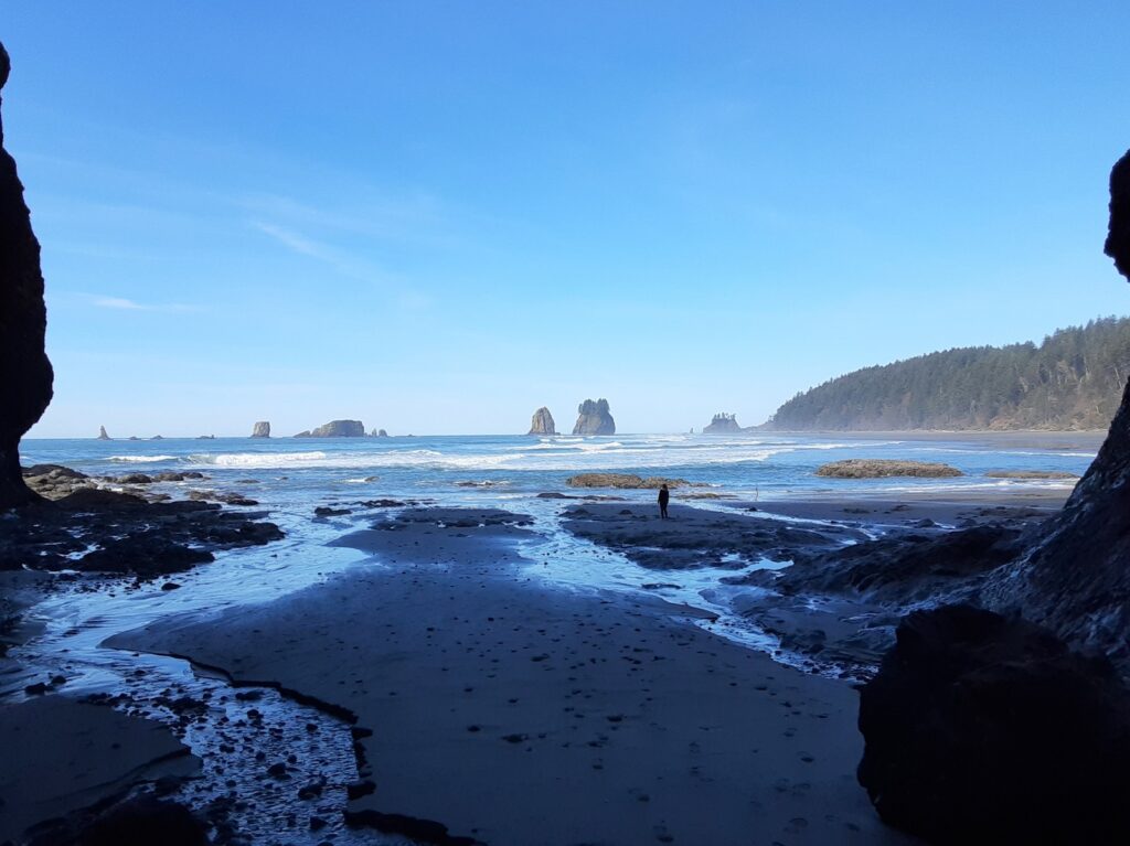 Less heralded than some, Second Beach, south of La Push, checks all the boxes of a coastal adventure: sea stacks, sea caves, a natural arch, and beachcombing. It even features an enchanting forest walk to and from the beach that will get your heart pumping on the return ascent, which climbs 220 feet back to the parking area.